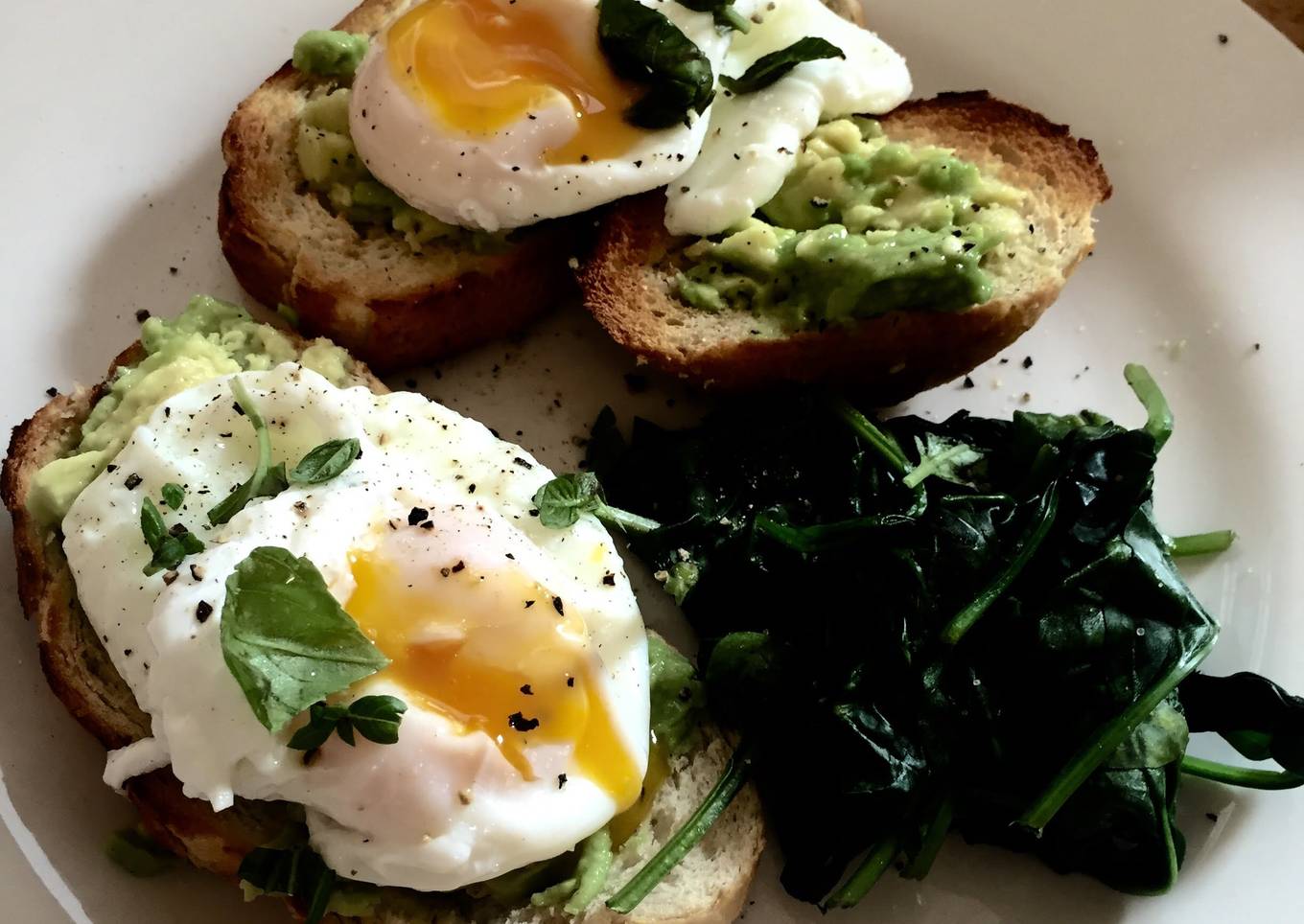 - Serve the toast with the poached eggs on top and spinach on the side for a healthy start to the day! Season to your liking.