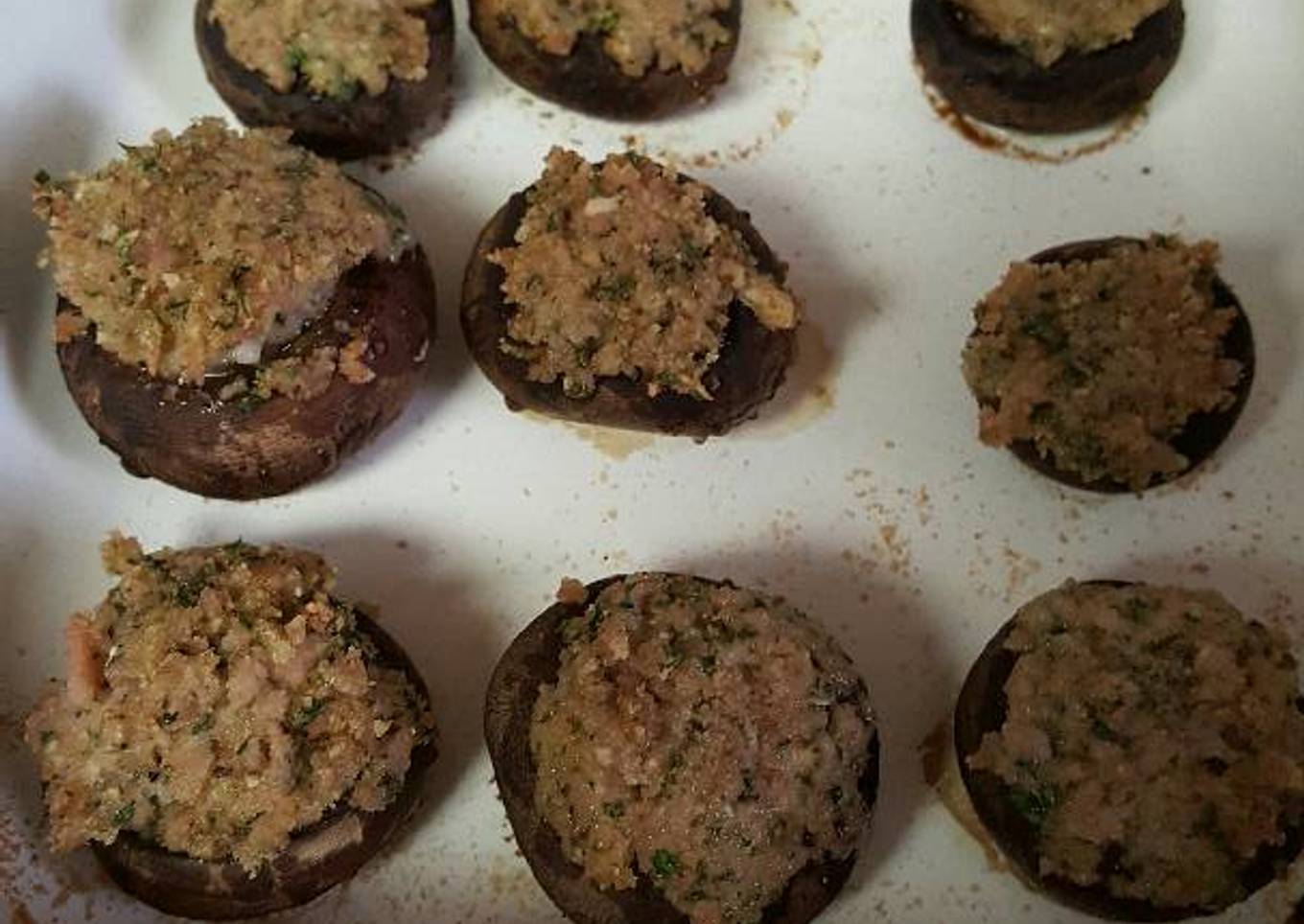 - Place mushroom caps upside down on prepared baking sheet. Using teaspoon, carefully stuff caps with filling. Bake until heated through, about 15 minutes. Serve immediately.