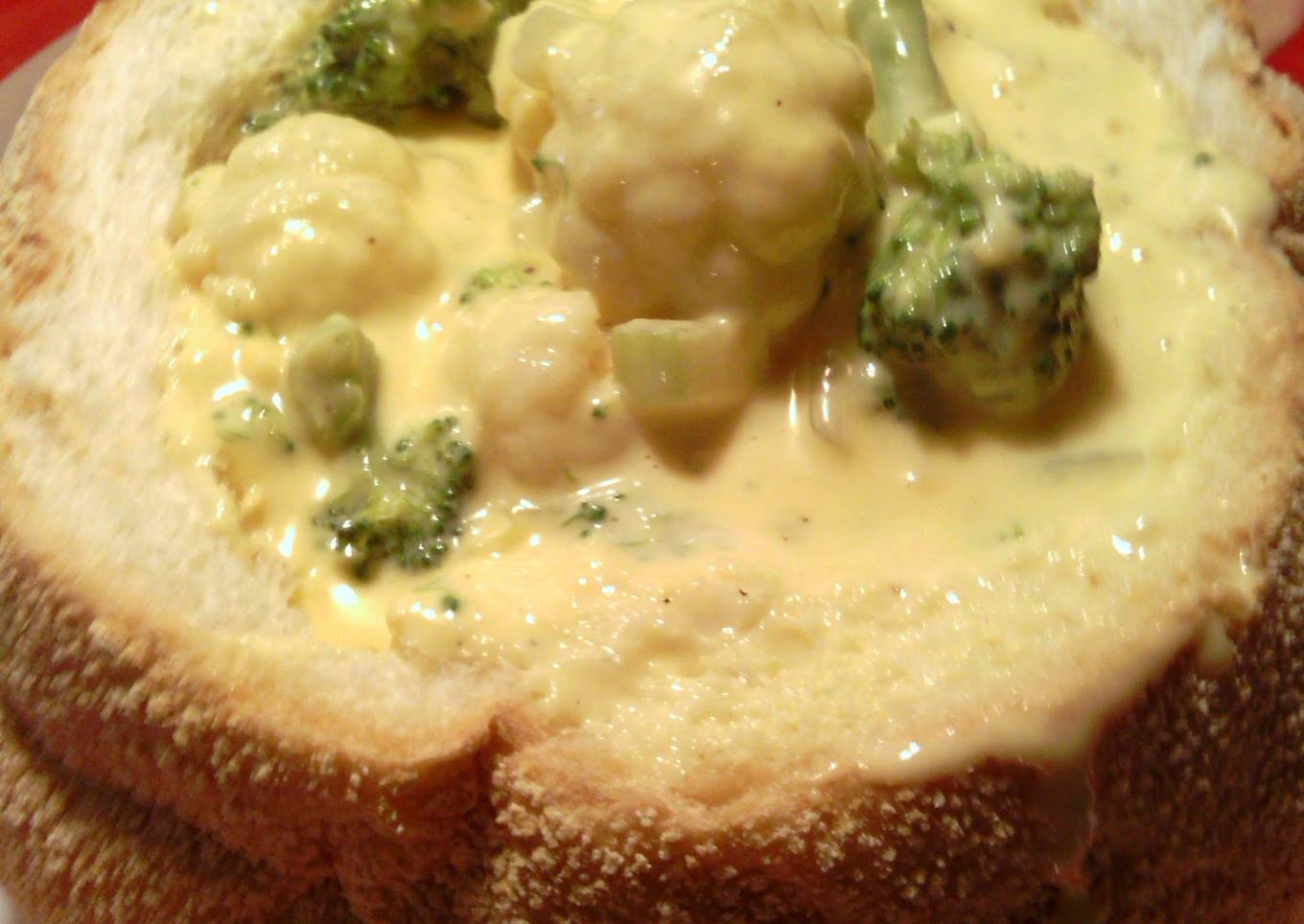 - now with the sour dough bread cut center out pull some of the bread out of center, pour ur soup in side the bread bowl, right before serving. now serve. enjoy ur soup.