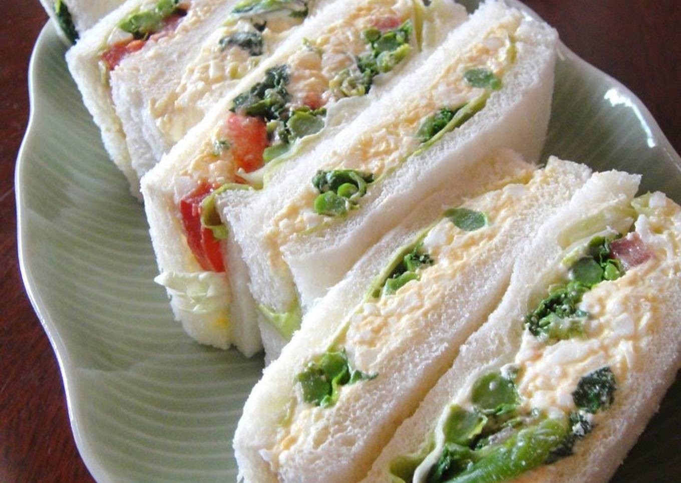 If you make the sandwiches at night, wrap up in plastic and chill in the refrigerator, then cut them and eat in the morning they will be really moist and delicious. Recipe by Koyokkoyo