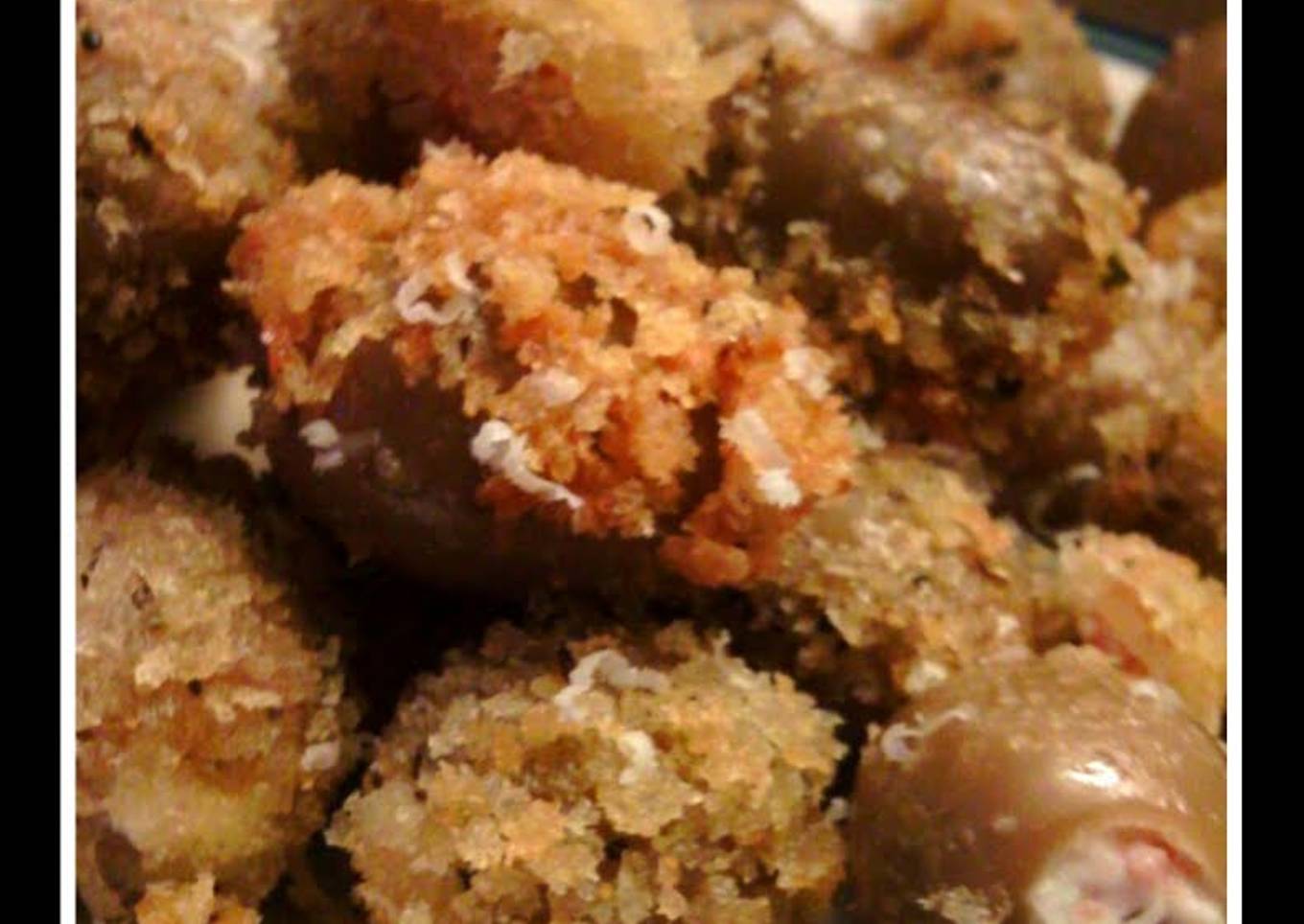 Salty, crispy olives with a cream cheese center. Great with a nice cold beer!
