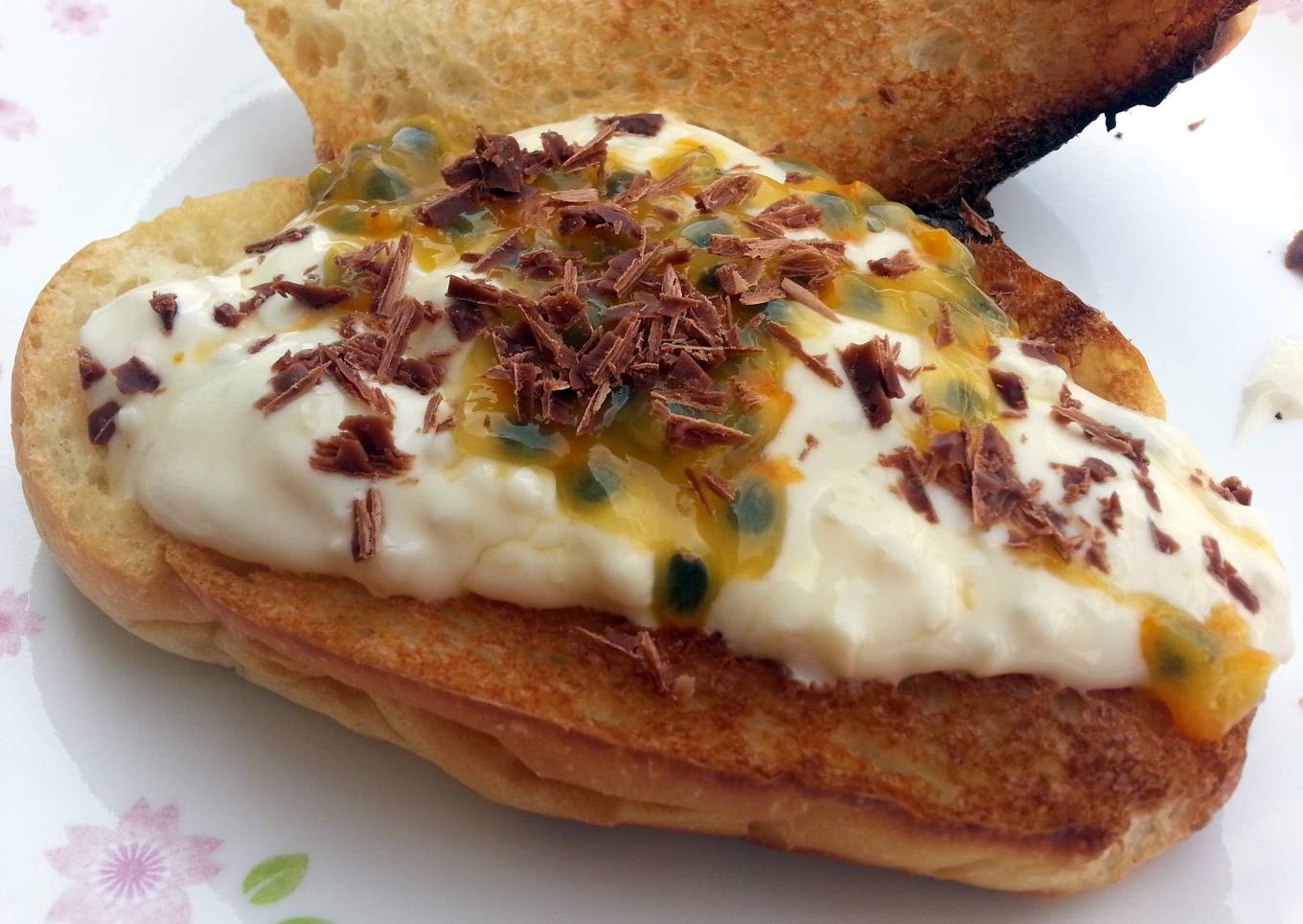 - Mix yogurt with sugar with almond the TOP with fresh passion fruits