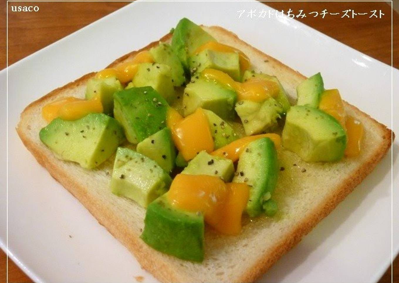 - Top with diced avocado and cheese. Top with honey and toast. Serve with black pepper if you like!
